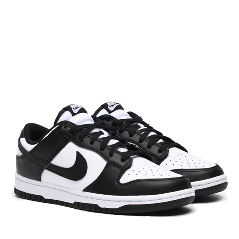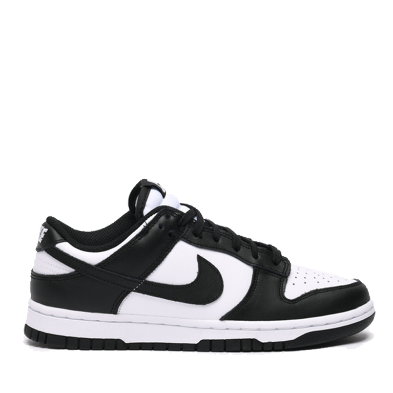 Классическая модель Nike Dunk Low выполнена в ретро-стиле. Кожаный корпус черного и белого цвета с контрастными вставками и фирменной эмблемой сбоку. Вышитый логотип сзади. Сетчатая подкладка черного цвета, двухслойная подошва.
